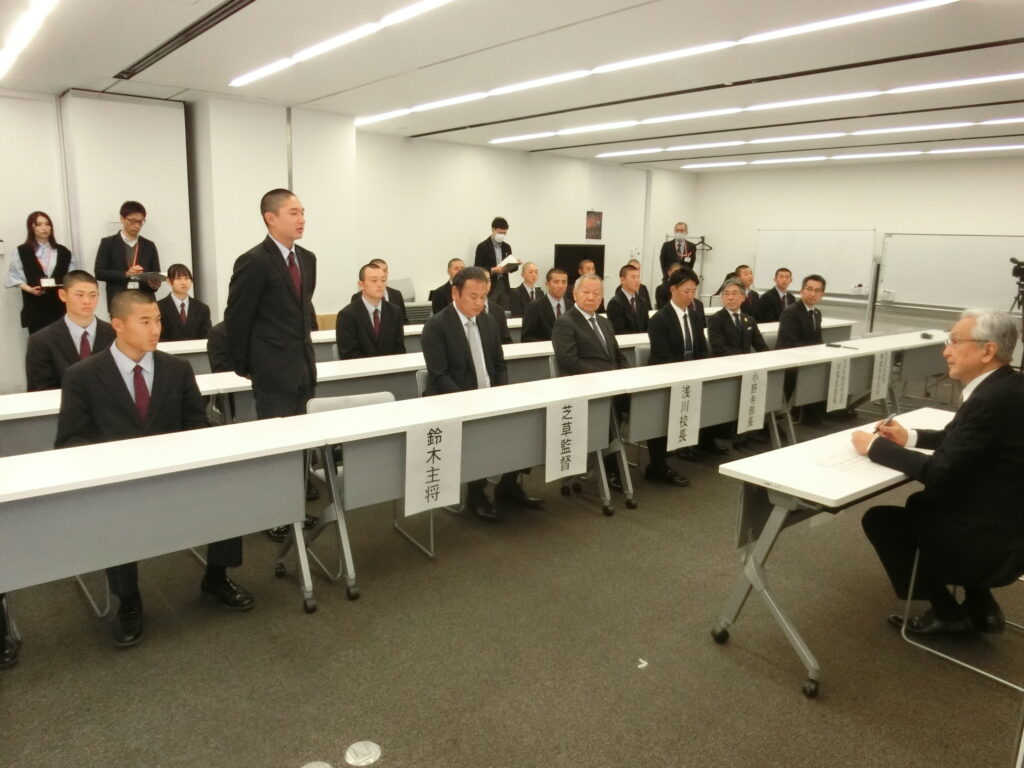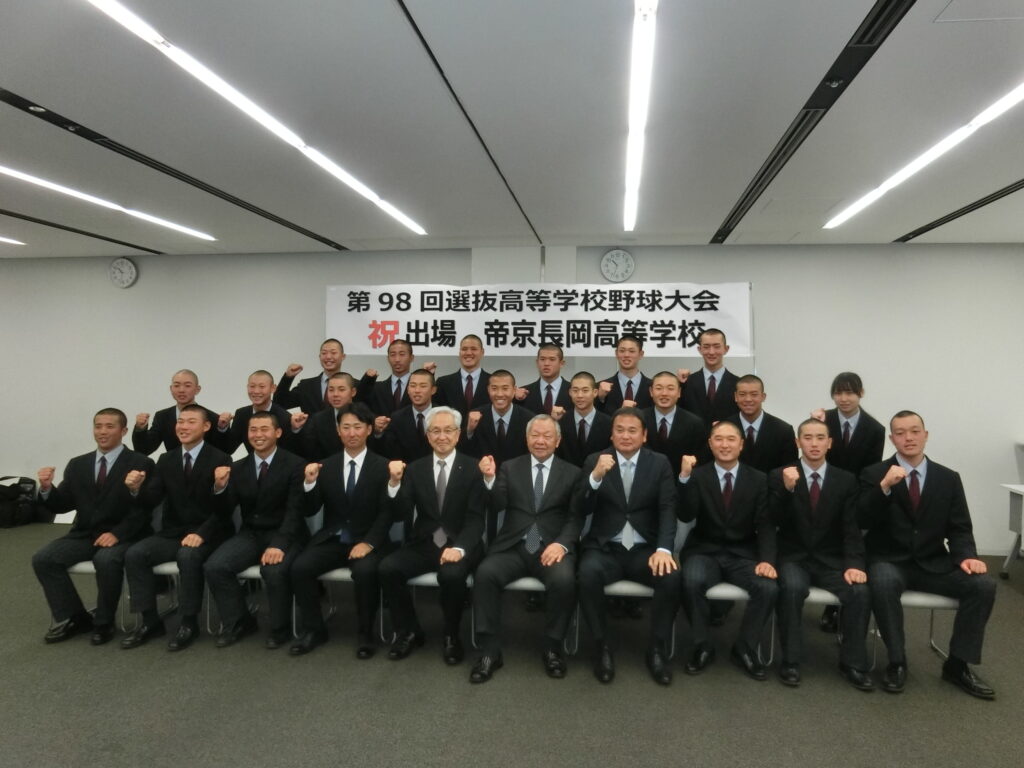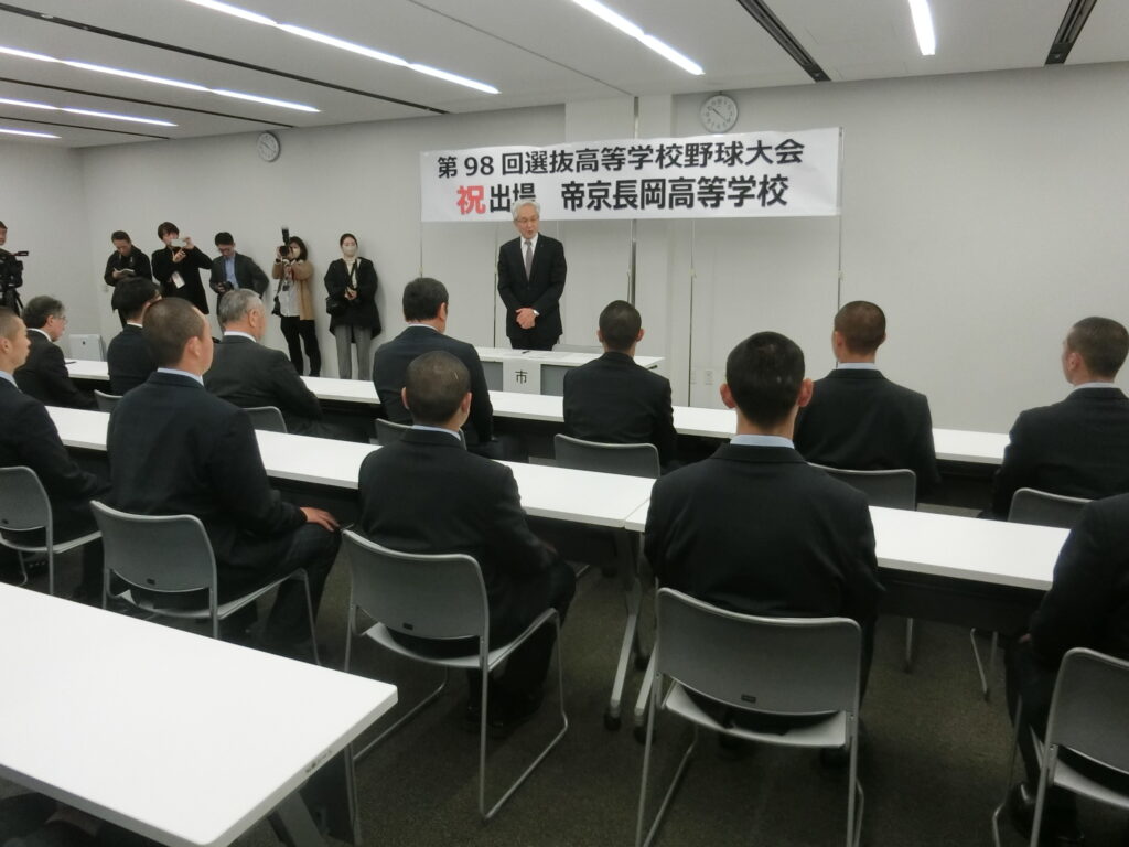 第98回選抜高等学校野球大会の出場校に選出されました帝京長岡高校が2月24日、長岡市の磯田達伸市長を表敬訪問しました。
