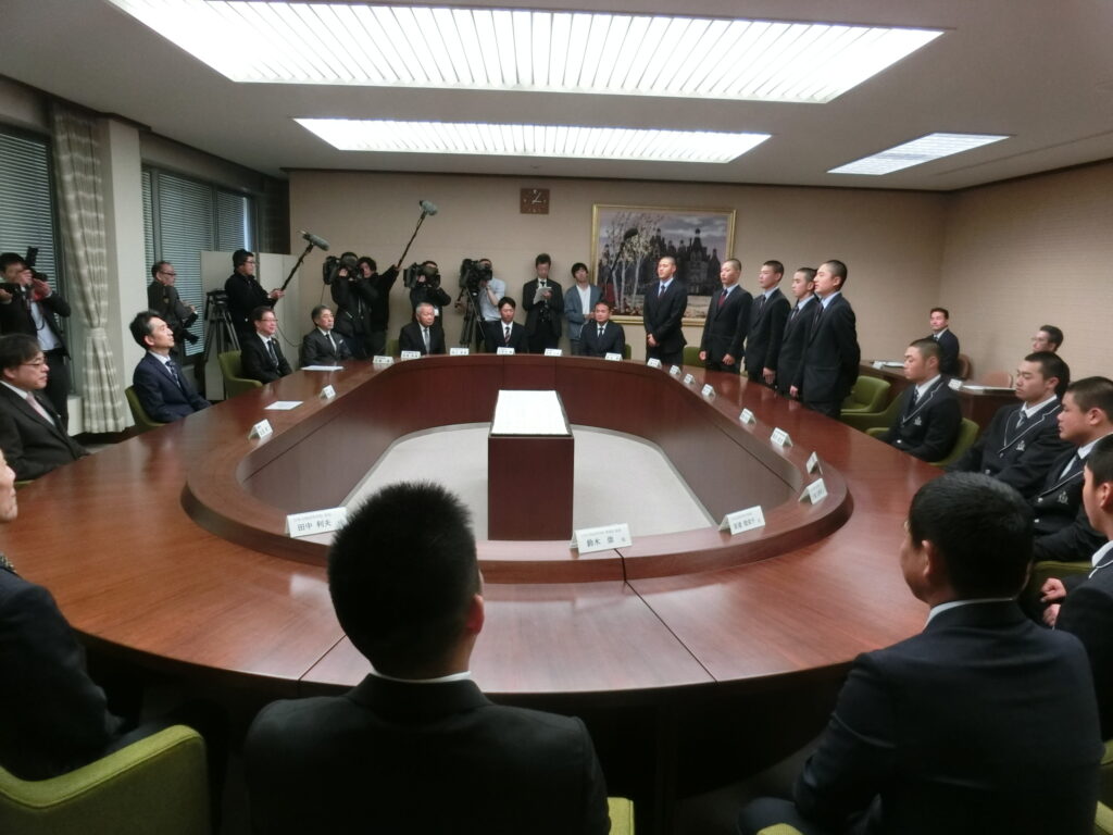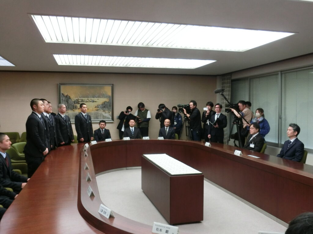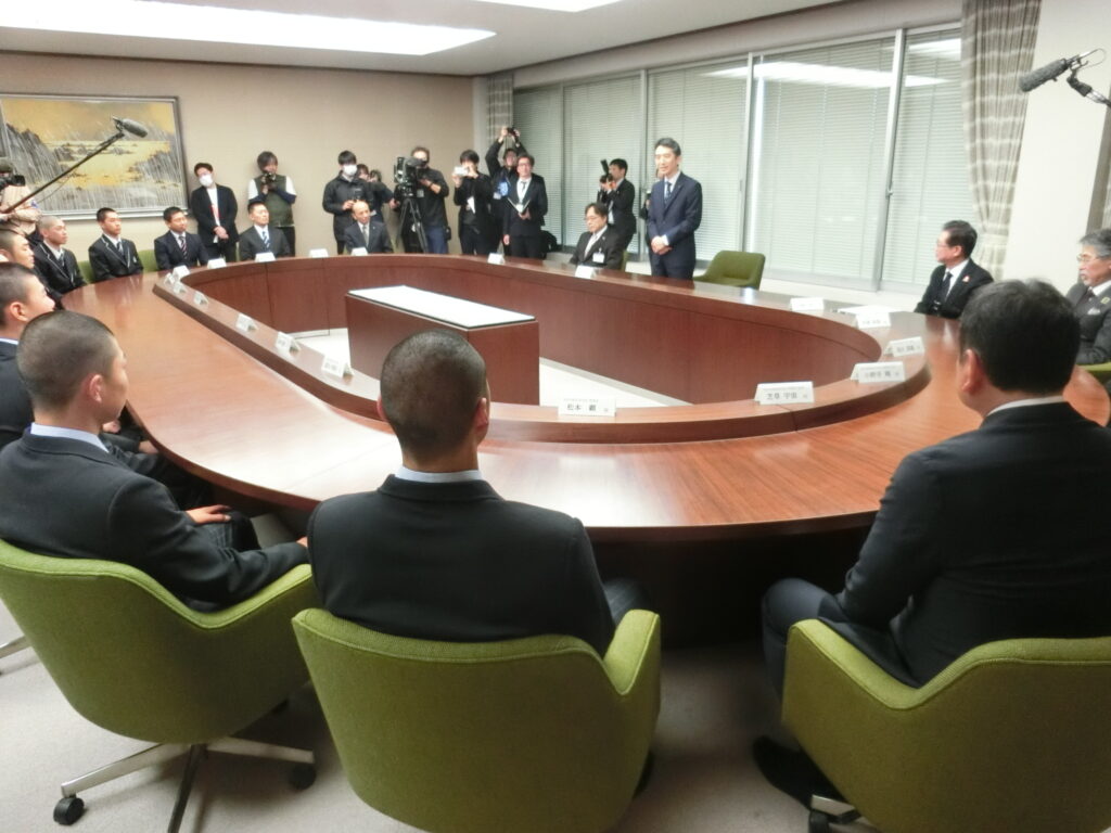 第98回選抜高等学校野球大会の出場校に選出されました帝京長岡高校・日本文理高校が2月25日、鈴木康之副知事を表敬訪問しました。